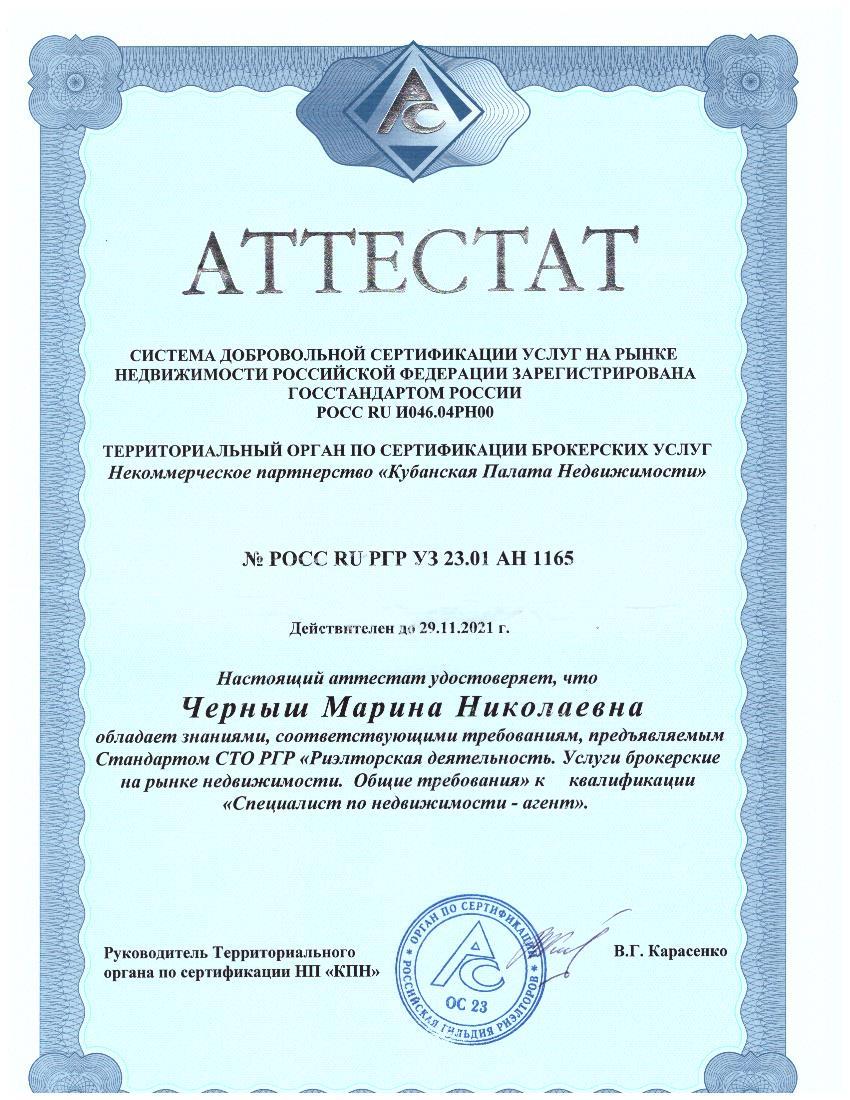 Хочу выразить огромную благодарность Черныш Марине за помощь в продаже нашего дома. Долго сами не могли найти покупателей. Обратились по рекомендации к Марине. Она профессионал своего дела. Грамотно организовала рекламу, давала советы по предпродажной подготовке, всегда лично проводила показы дома. Дом продали за месяц по цене даже выше, чем та на которую рассчитывали изначально. И очень быстро помогла нам найти и купить квартиру сыну в Краснодаре.